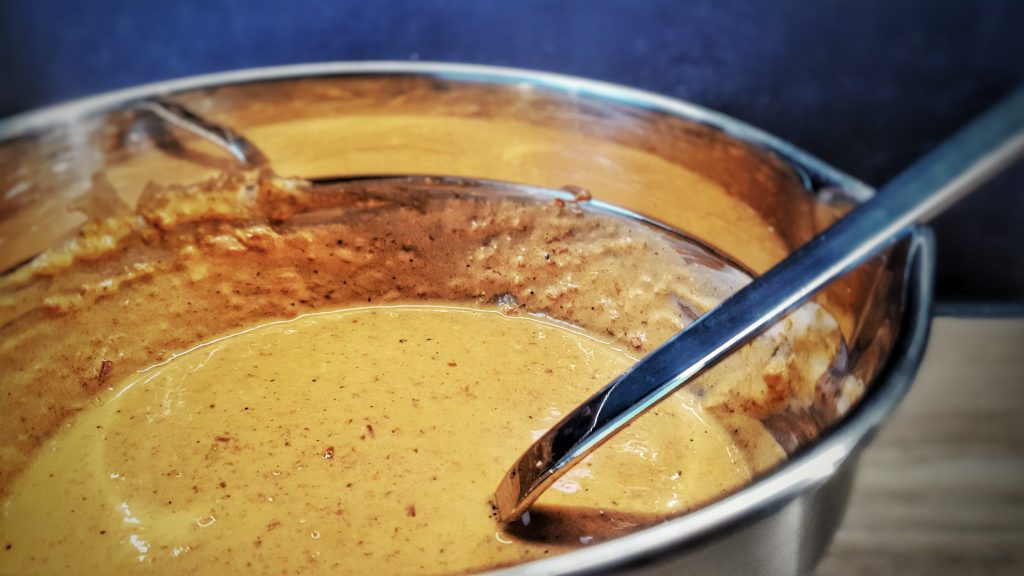 - Zusammen mit den anderen Zutaten in einen Mixer geben und 5 Minuten mixen, bis eine glatte Sauce entsteht.