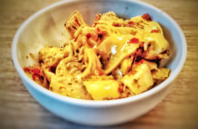 - Das Öl in einer Pfanne erhitzen in die Zwiebeln darin andünsten, bis sie glasig sind.
