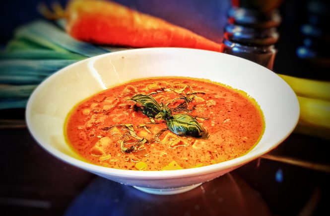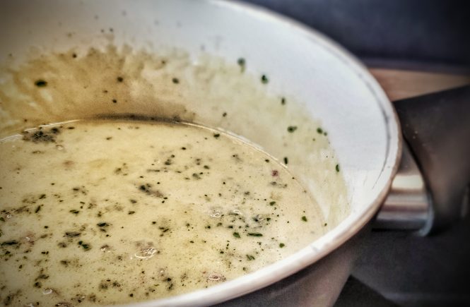 - Bei geschlossenem Deckel ca. 2 Stunden bei geringer Hitze köcheln lassen.
