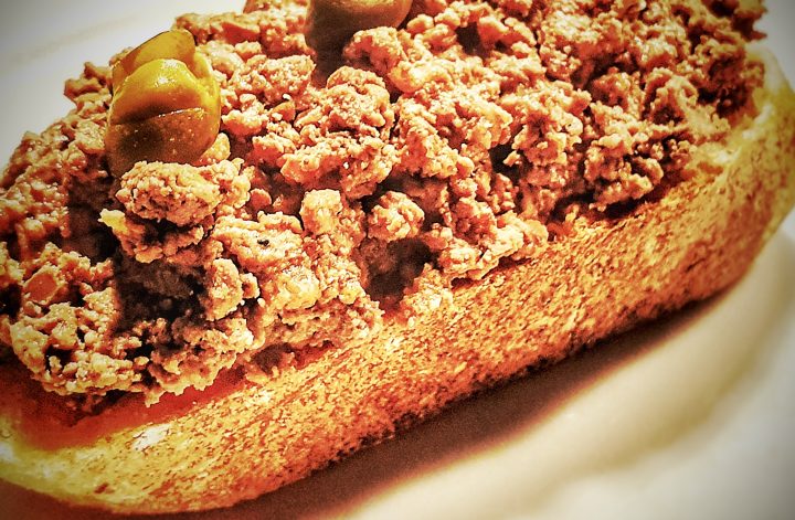 Für toskanische Crostini wird der Aufstrich auf geröstetes, italienisches Weißbrot gestrichen.