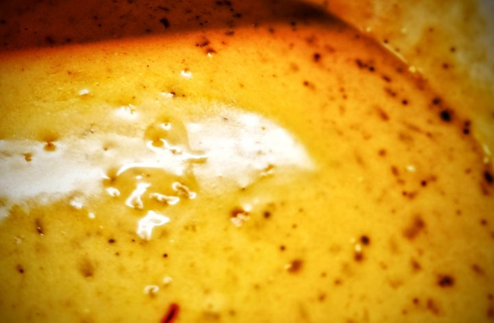 - Währenddessen die Hühnerbrühe in die Pfanne geben und 5 Minuten reduzieren.