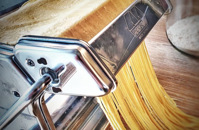 - Die Rollen in 2 cm große Stücke schneiden, diese über die Kante einer Gabel drücken und auf einem bemehlten Geschirrtuch auslegen.