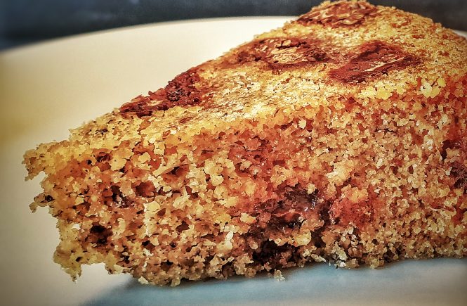 - In eine runde Kuchenform füllen und im Backofen bei Umluft ca. 45 Minuten backen.