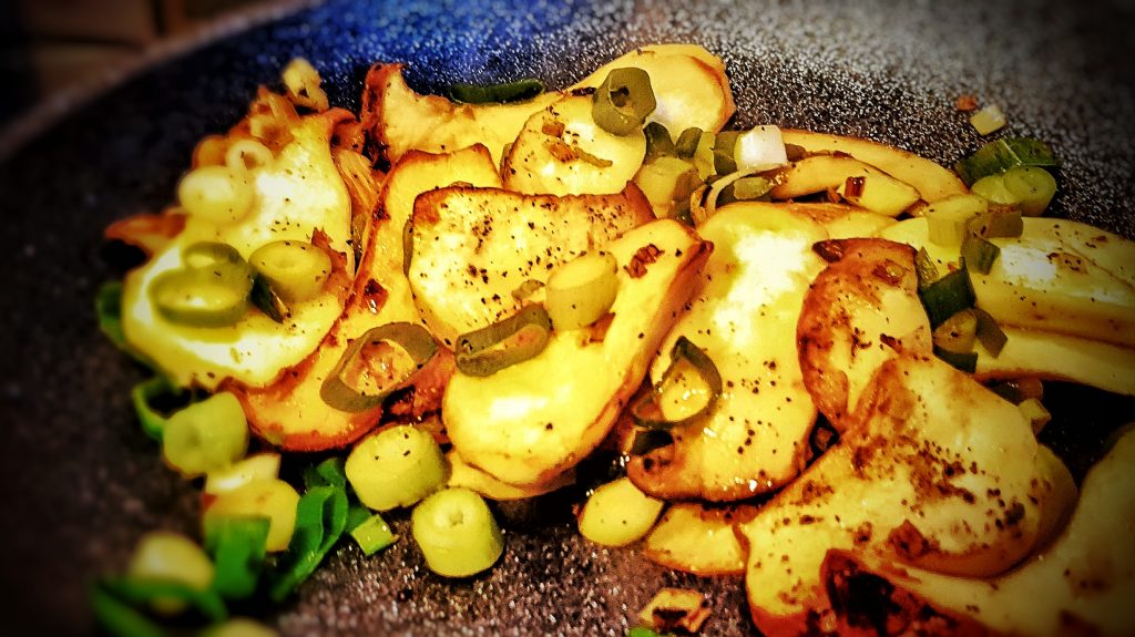 - Die Frühlingszwiebeln untermischen, mit Salz, Pfeffer und Zitronensaft abschmecken.